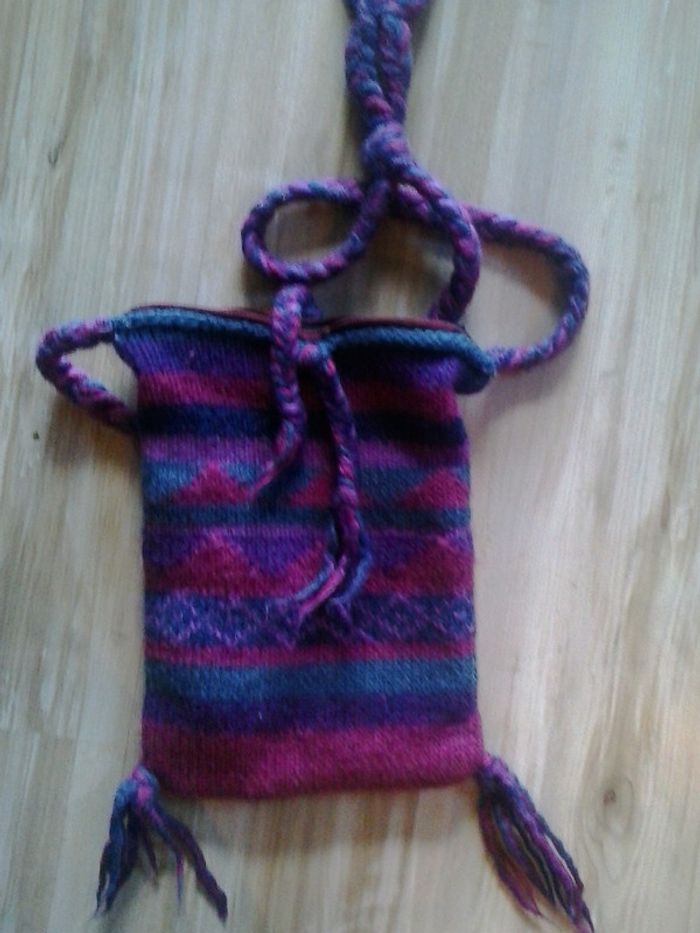 Sac en laine bandoulière avec fermeture éclair et lacets à nouer. Très bon état