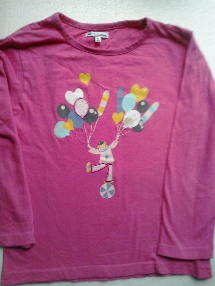 Pyjama fille avec dessin clown manches longues + pantalon rose pâle avec des points fuchsia. Très bon état