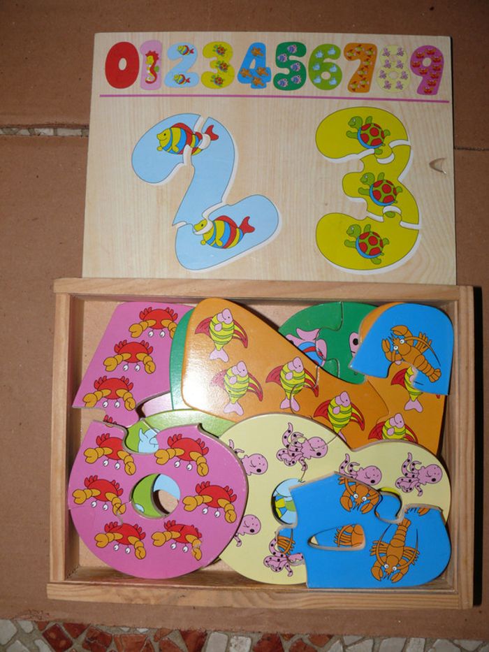 Puzzles chiffres de 1 à 9 dans un coffret en bois