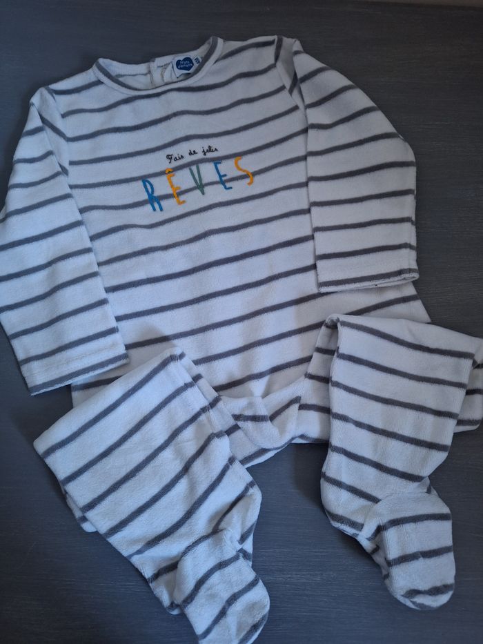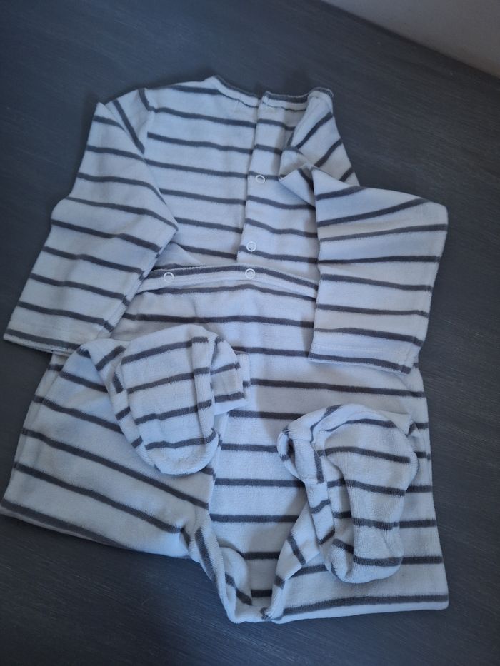 GARÇON 24 MOIS N°445 grenouillère rayé Blanc / gris 75% coton 25% polyester Taille 24 mois / 2 ans Mots d enfants 3€ #kelly_garço24mois