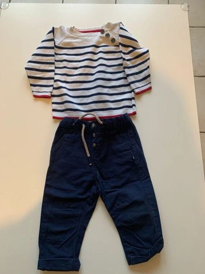 Peu porté très bon état taille 12 mois le pantalon est un obaibi et le haut est grain de blé.