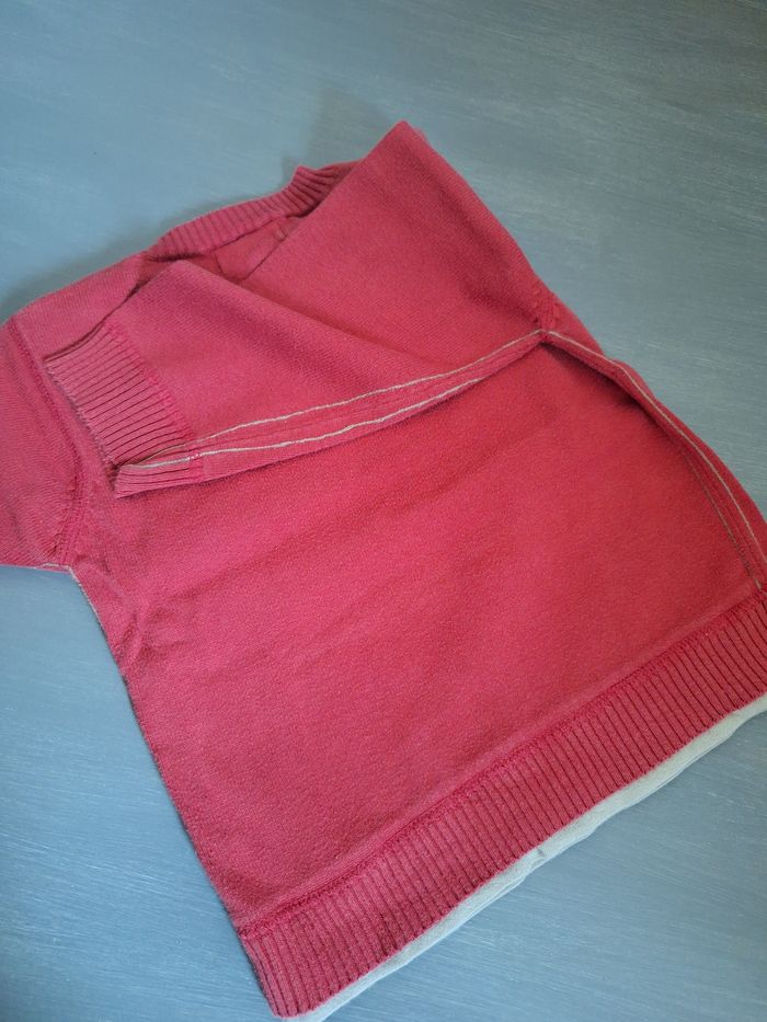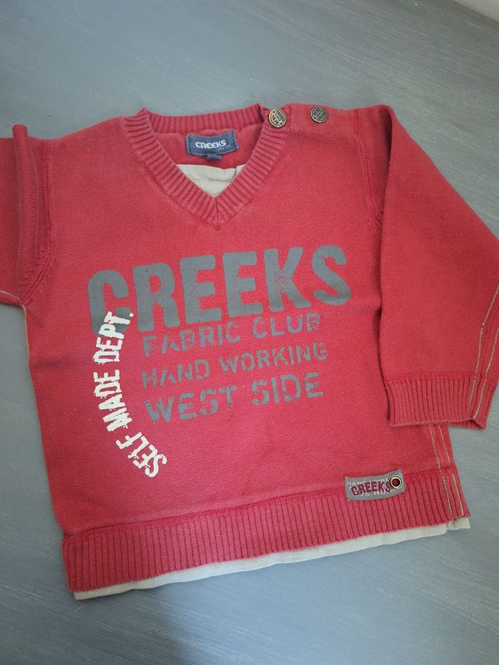 GARÇON 24 MOIS N°581 pull fin Rouge passe Col v Effet maillot au dessous Pression épaule 100% coton Taille 24 mois / 2 ans Creeks 3€ #kelly_garçon24mois