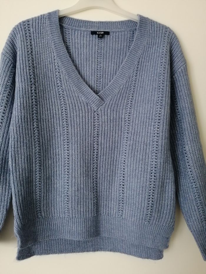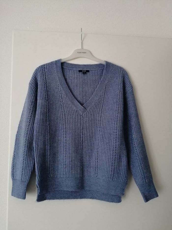 Pull col v bleu ciel Kiabi taille XS - photo numéro 1