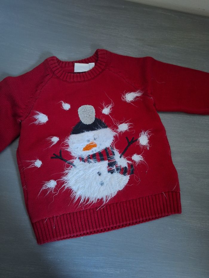 GARÇON 24 MOIS N°585 pull rouge Bonhomme de neige 75% coton 25% nylon Taille 24 mois / 2 ans Name it 5€ #kelly_garçon24mois