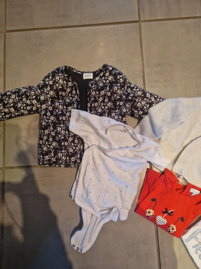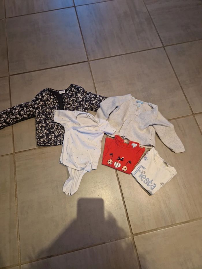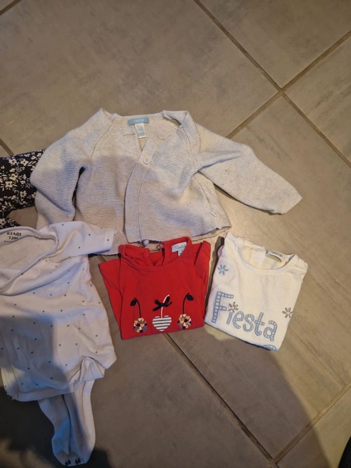 Lot 12 mois Veste tape à l'œil Gilet okaidi Body MC kiabi Tee shirt blanc MC tape à l'œil Tee shirt rouge ML Kimbaloo