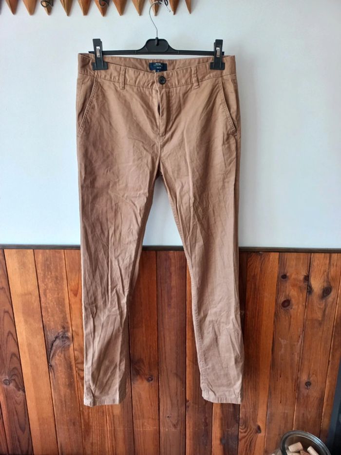 Pantalon chino marron slim fit, petit fils tiré derrière voir photo. #bakecotaille38homme