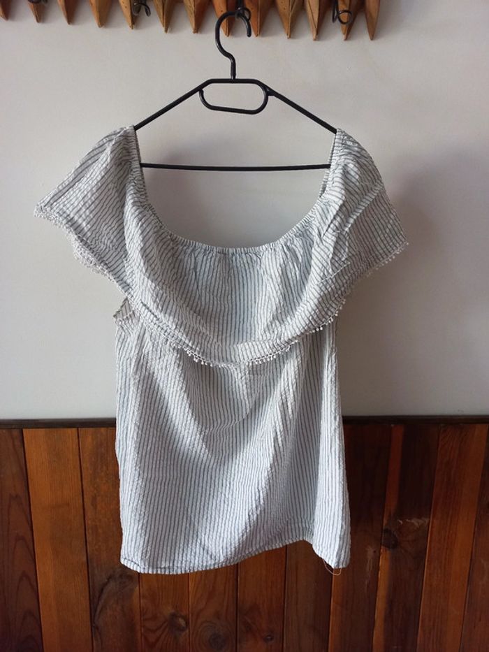Blouse rayé gris avec volant en haut très jolie #bakecotaille50femme #bakecotaille52femme