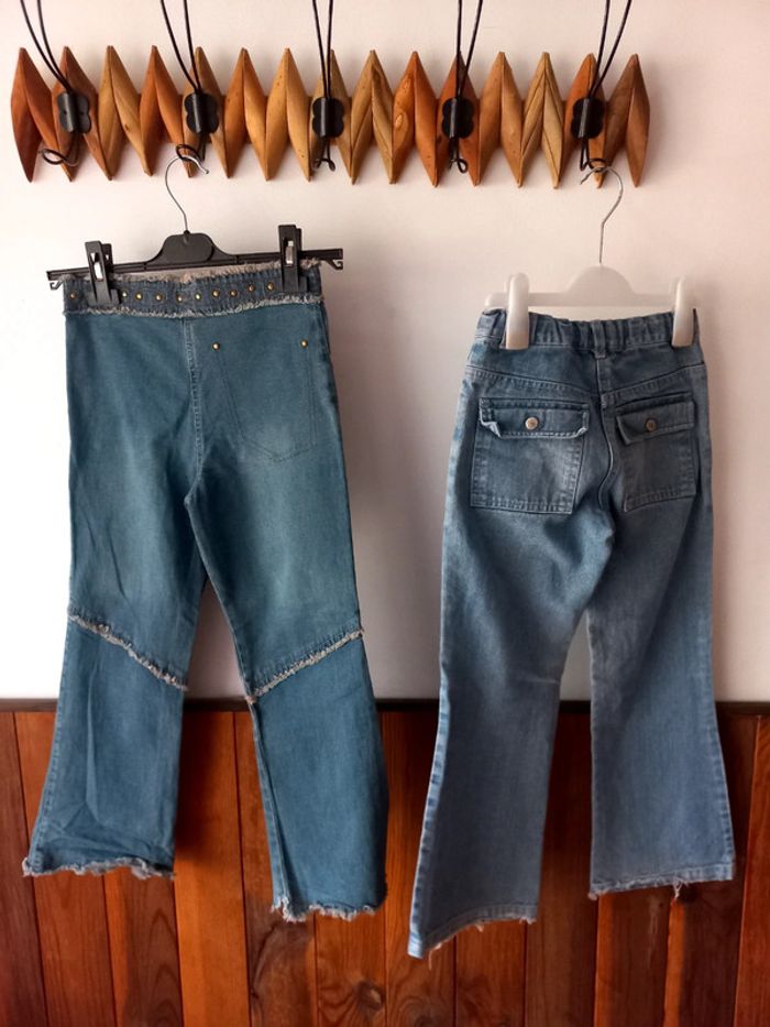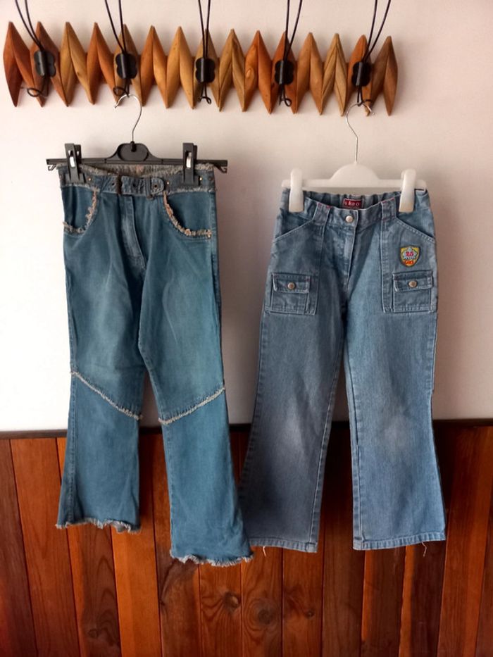 Lot de 2 jeans l,un des 2 n à plus l'étiquette de la taille., il correspond à du 9/10ans . Le bas est abîmé voir photo sur l'un des 2 . #bakeco9ansfille