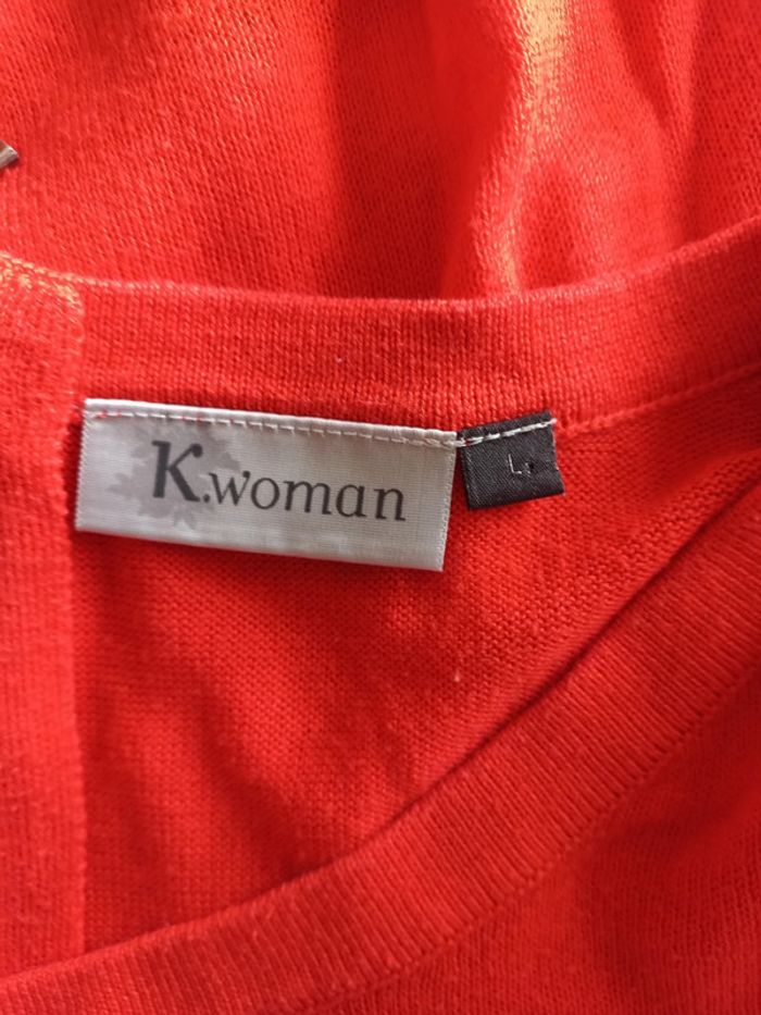 Pull orange un peu plus long derrière, il y a un petit accro devant qui a été réparé voir photo #bakecotaille40femme