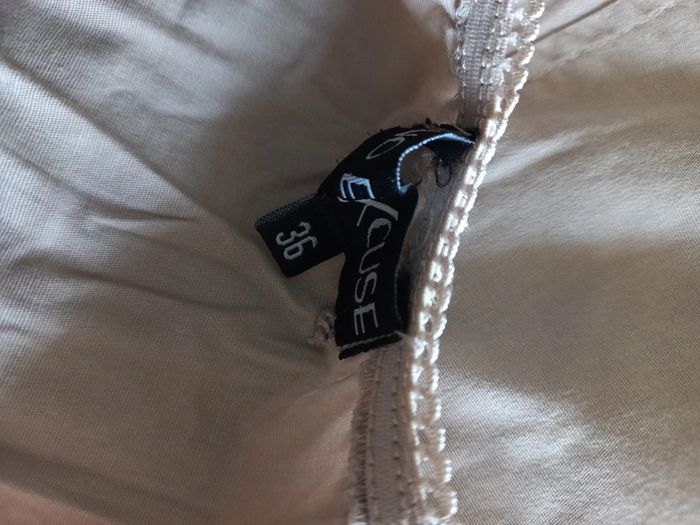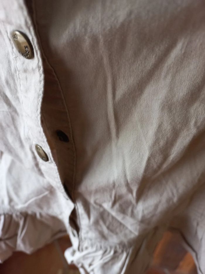 Robe beige boutonnée par pression il y en a un qui ne tient pas soit le changer soit mettre un point de couture, il manque le petit crochet pour la ceinture mais tiens quand même #bakecotaille36femme