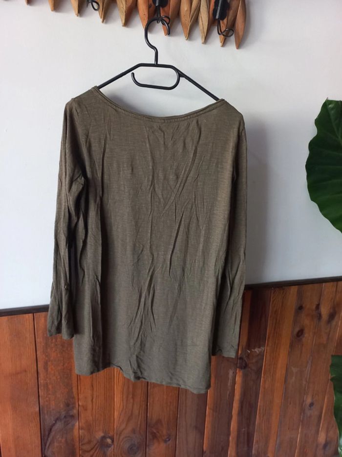 Tunique manches longues kaki, bouton aux manches pour les retrousser, il y a un passant pour une ceinture ( pas de ceinture avec) #bakecotaille40femme #bakecotaille42femme
