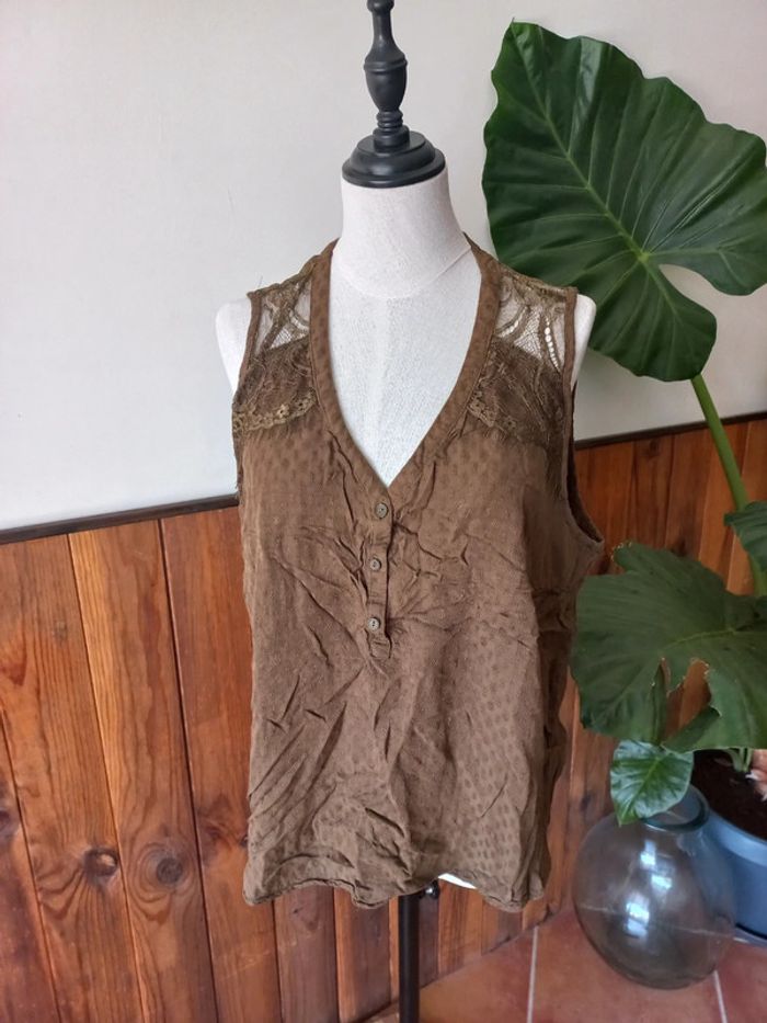 Débardeur kaki dentelle epaule #bakecotaille46femme