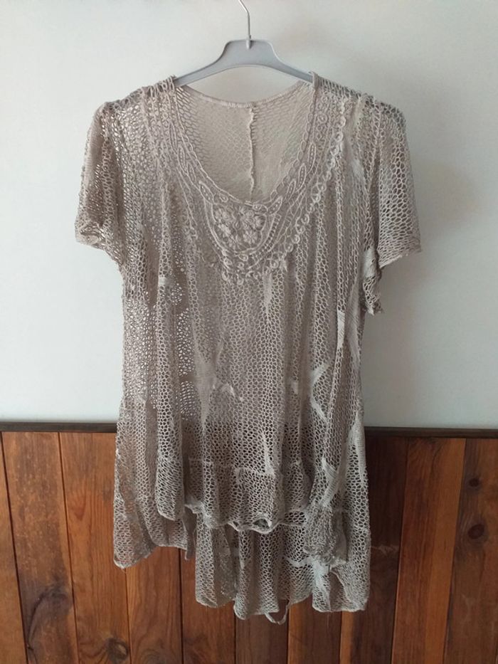 Haut effet maille couleur crème à porter sur un autre haut , le bas a des défauts voir les photos. Taille unique mais convient de la taille 44 à 50 environ n'hésitez pas à demander plus d'informations si besoin #bakecotaille44femme #bakecotaille46femme #bakecotaille48femme #bakecotaille50femme