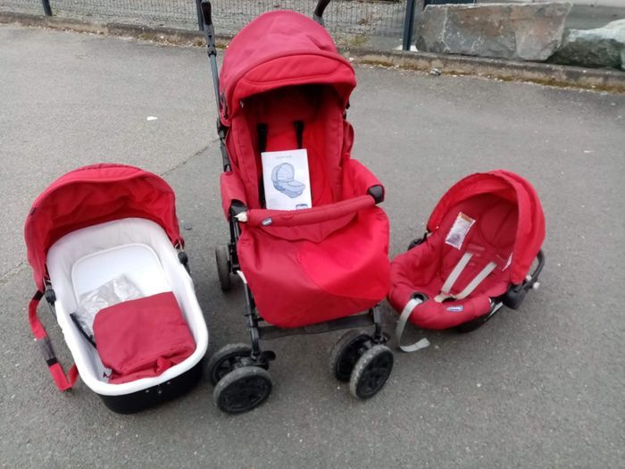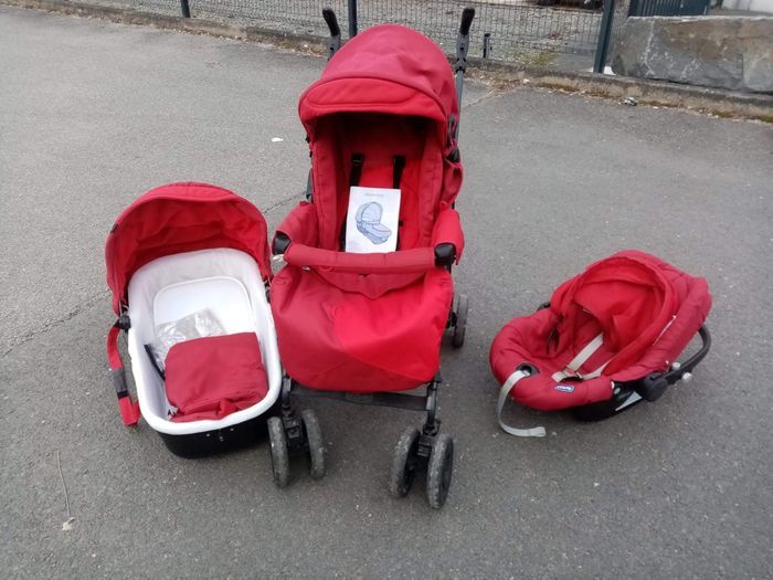 Chicco Trio qui a servi pour 2 enfants mais reste en bon état pour être utilisé par un 3 ème. Très costaud , pratique et confortable.