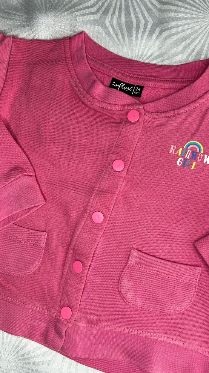 👧 Gilet sweat pour fille « rainbow girl » 🌈 Fermeture par boutons pressions 🩷 Taille: 24 mois 🌈 Marque: Influx 🩷 Couleur: Rose