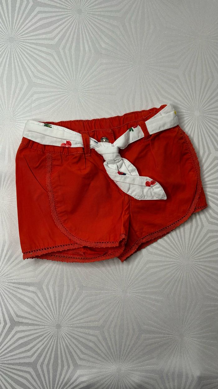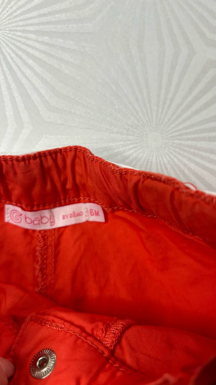 🩳 Short avec jolie ceinture et dentelle en bas des cuisses 🌿 Réglables à la taille et fermeture par bouton pression 🌻 Couleur: orange/corail 🌿 Taille: 6 mois 🌻 Marque: Gémo ‼️ Neuf jamais porté, juste lavé