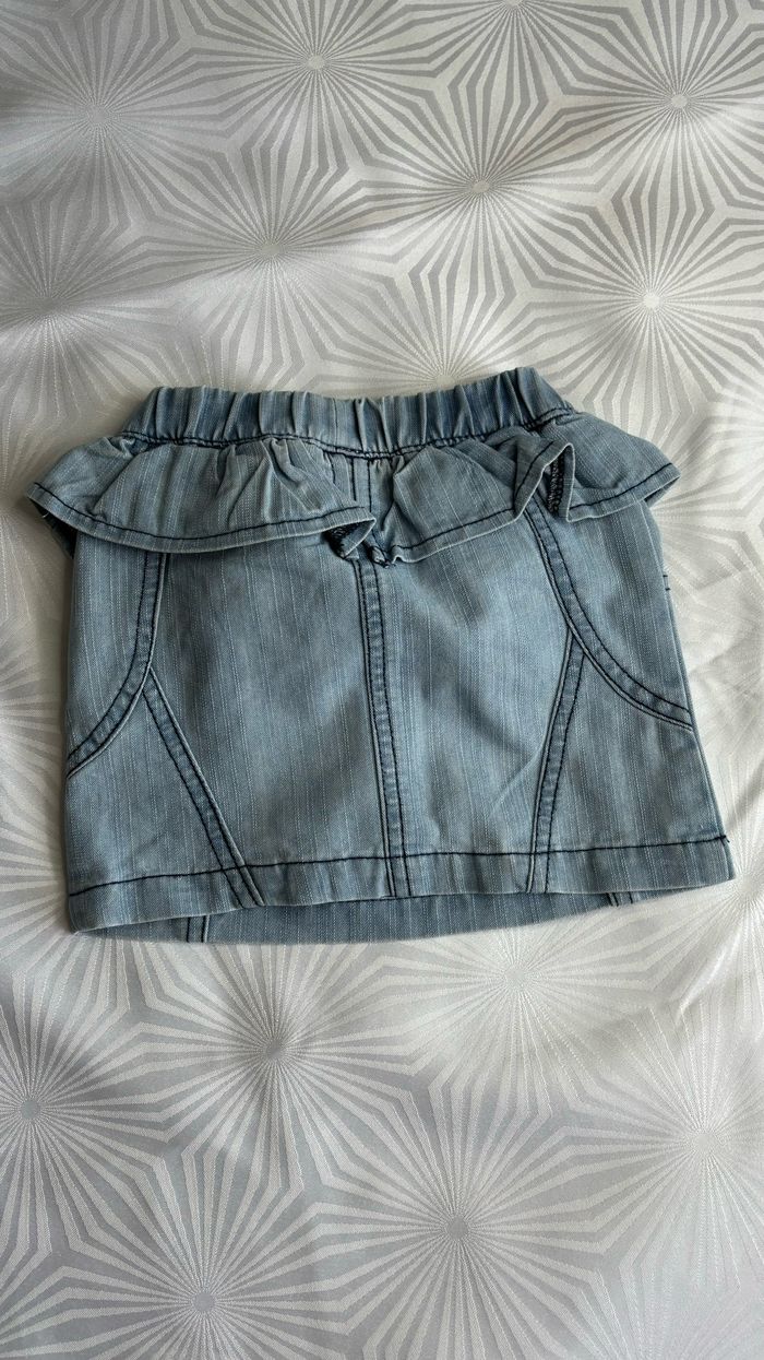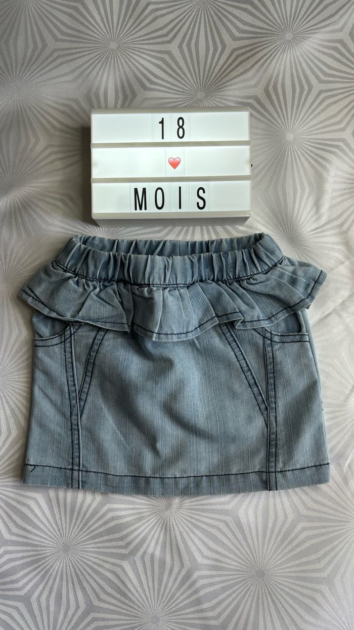 🩵 Jupe en jean à petits volants sur le haut 🩵 🩵 Taille élastique 🩵 Taile: 18 mois 🩵 Marque: influx Neuve, jamais portée, juste lavée
