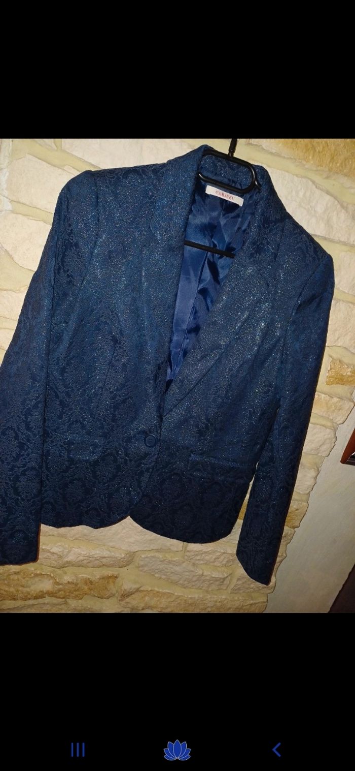 #femmeMpicolette Magnifique tailleur composé d une jupe avec fermeture éclair à l arrière et une veste. Effet brillant. En parfait état. Comme neuf