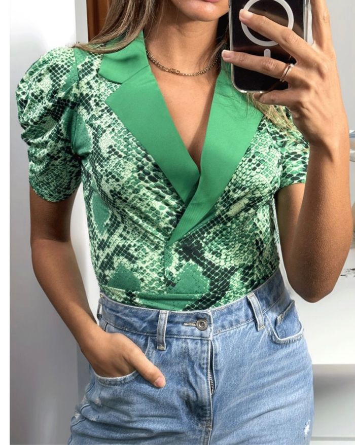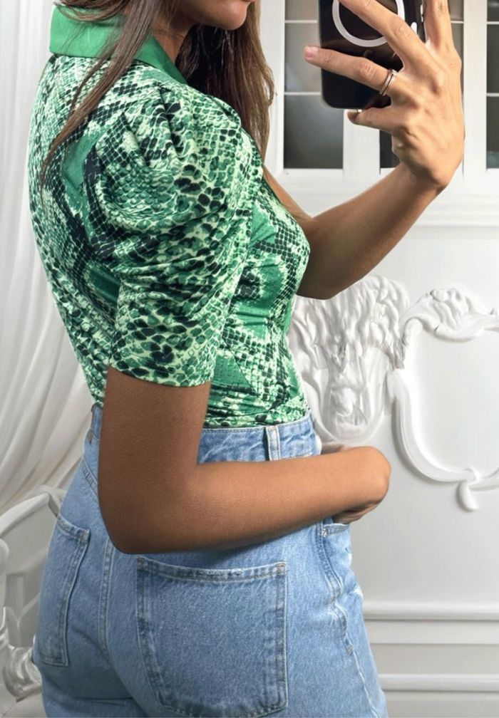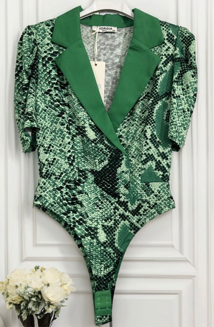 Body vert motif python avec col style blazer Neuf, étiqueté Taille S/M