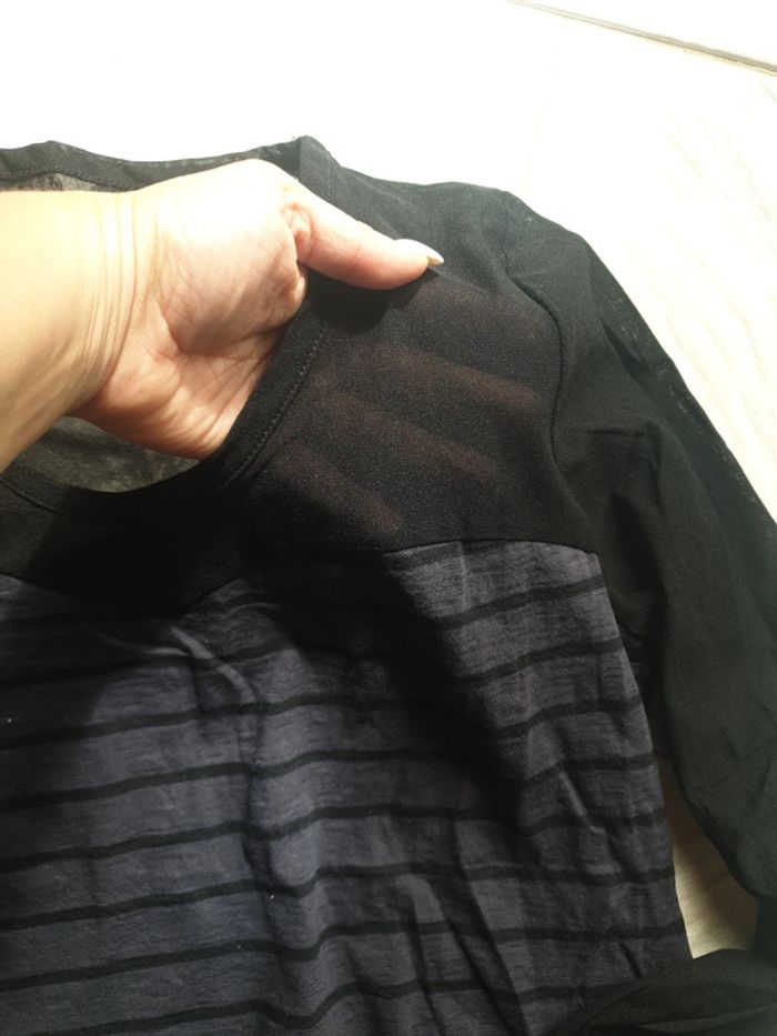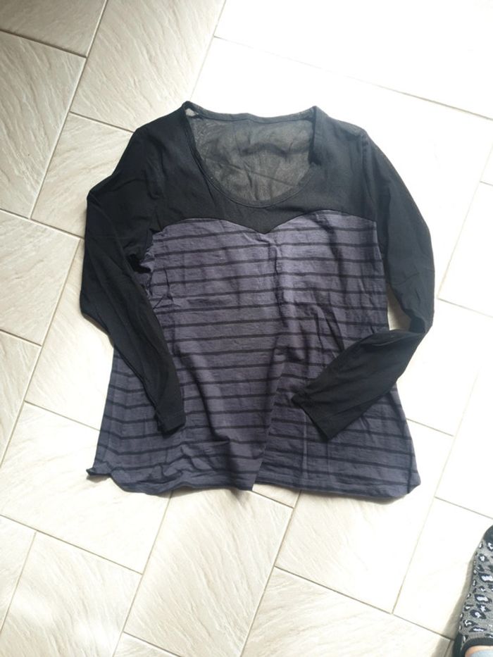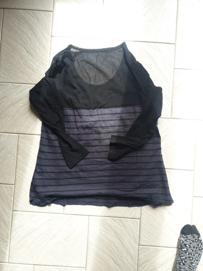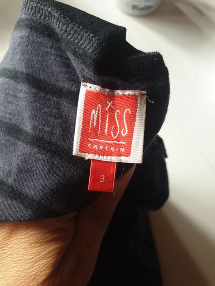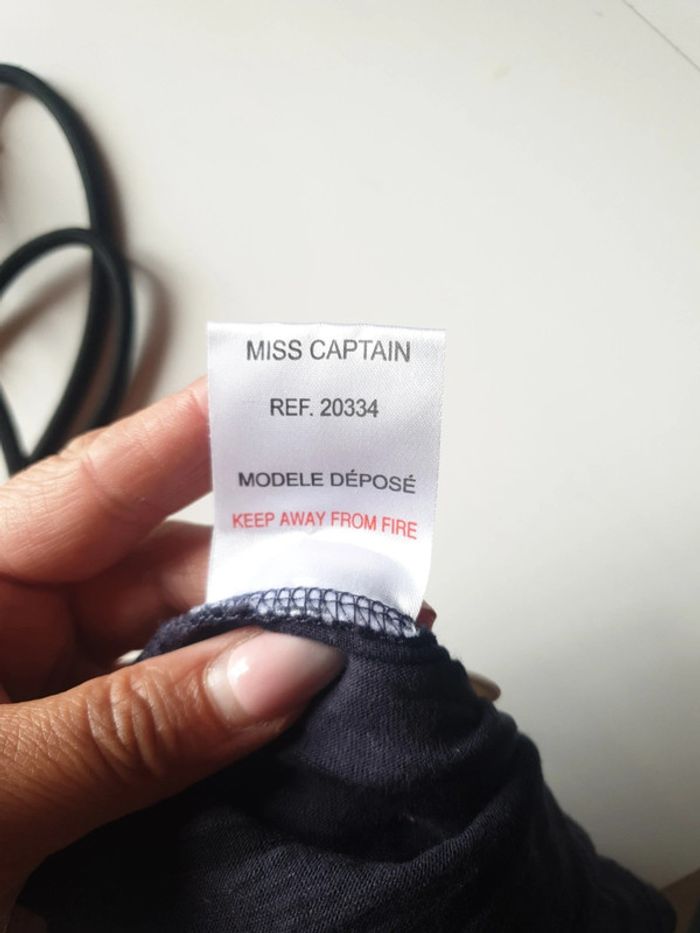 Haut femme Miss captain Taille 3 Bleu marine et noir Haut et manche effet résille en transparence Découpe devant effet décolleté