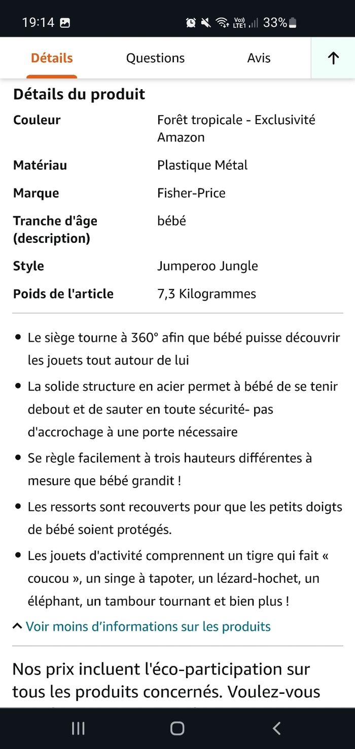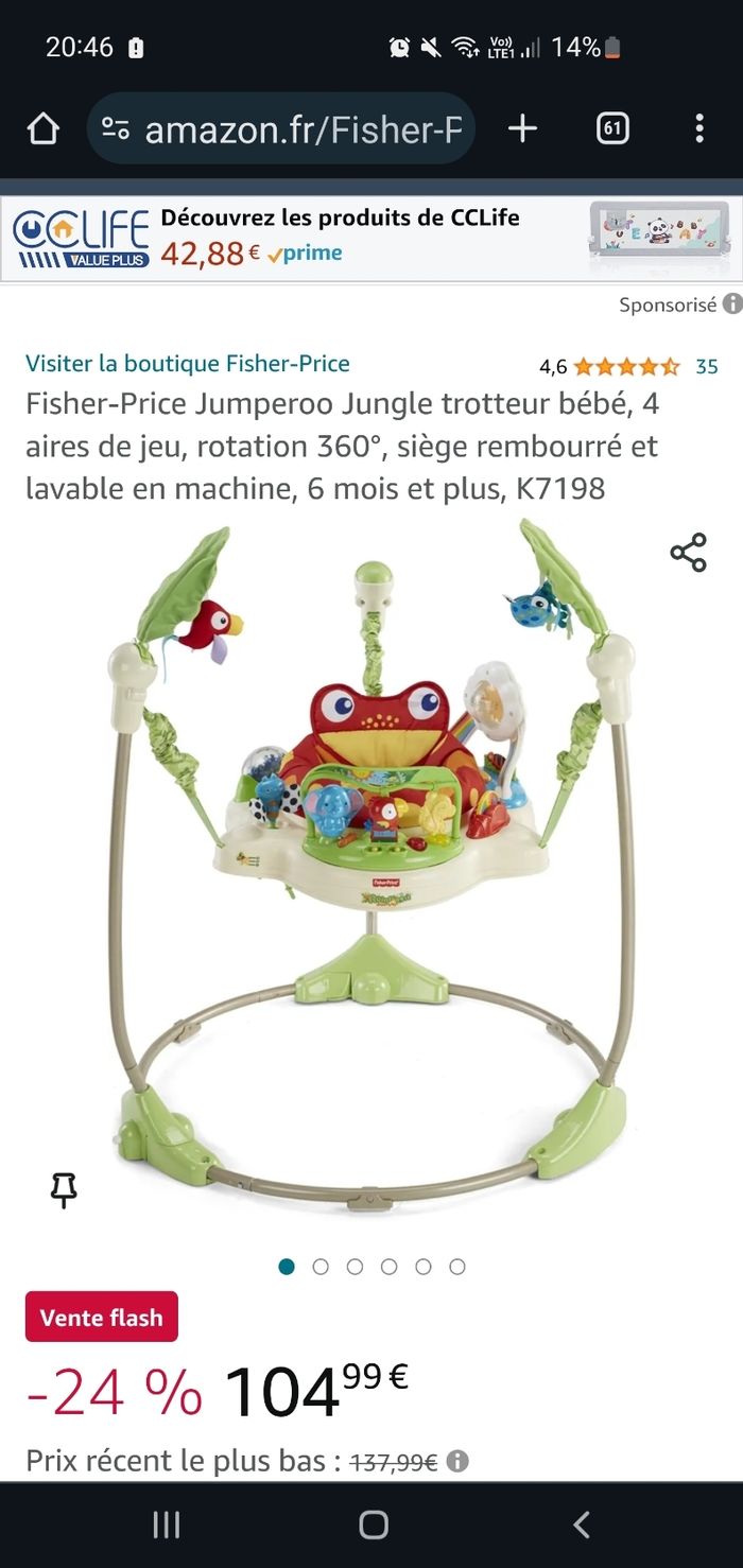 Jumperoo rainforest de marque Fisher-Price réglage de hauteur siège pivotant 360 degrés l'utilisable de 6 mois jusqu'à 12 kg très bon état