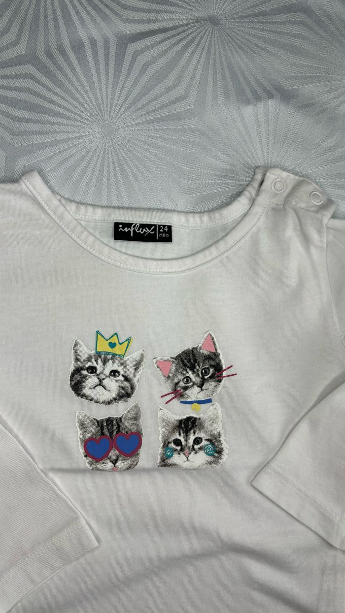 👑 Tee-shirt à manches longues 👑 😻 Couleur: Blanc à motifs têtes de chats 😸 Taille: 24 mois 🐱 Marque: Influx