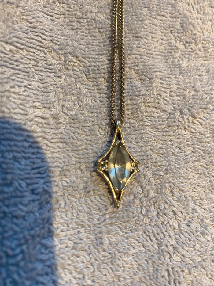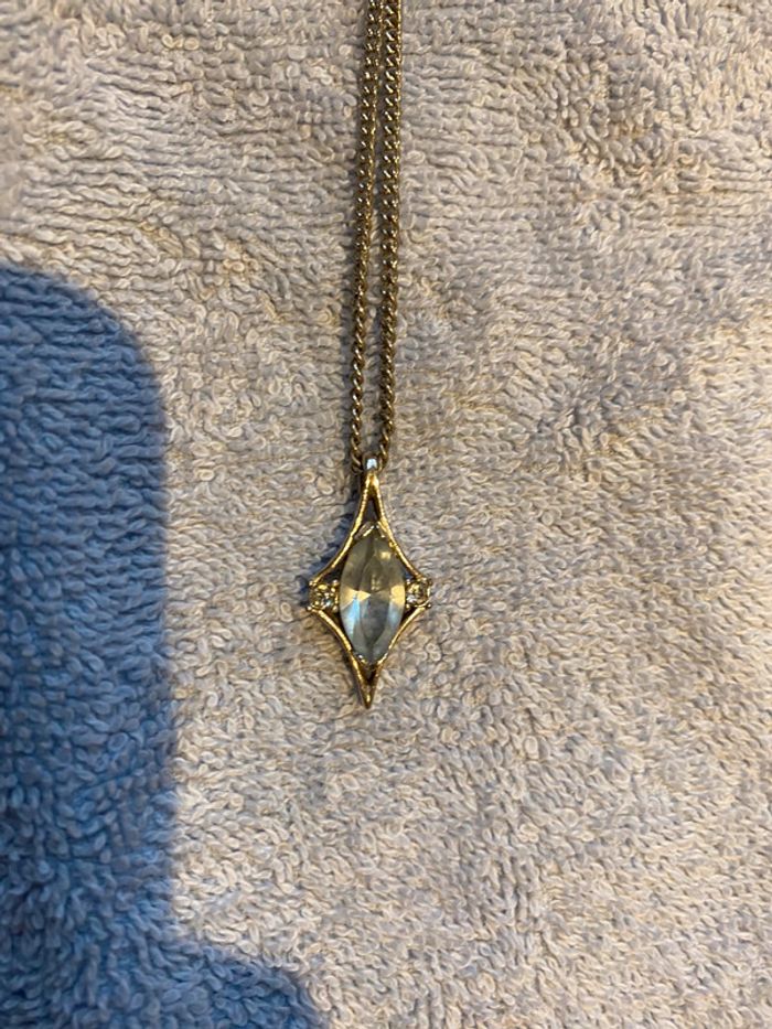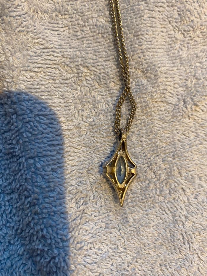 Collier avec pendentif contenant un « dialant » bleu clair Longueur totale de la chaîne environ 51cm #stephkawabijoux