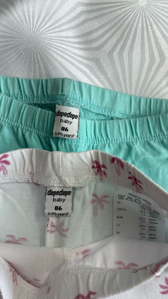 Lot de 2 shorts Taille 86cm ou 12/18 mois Marque dopodopo Un turquoise uni et un blanc à motif palmiers rose