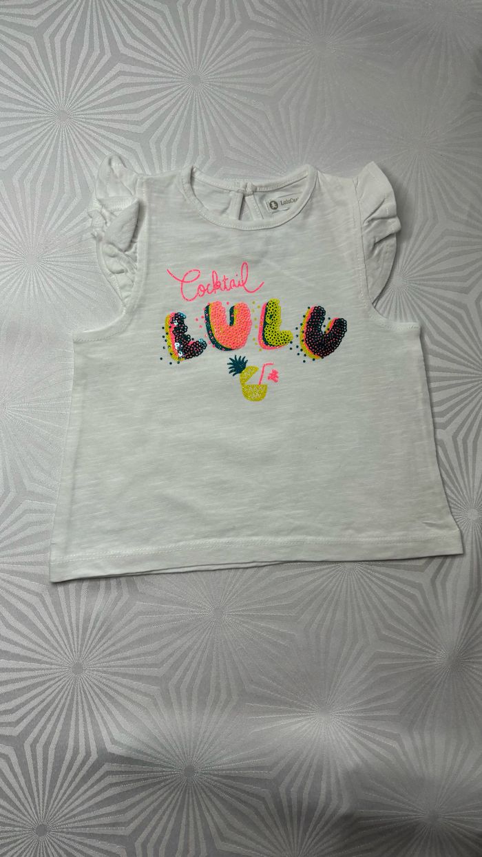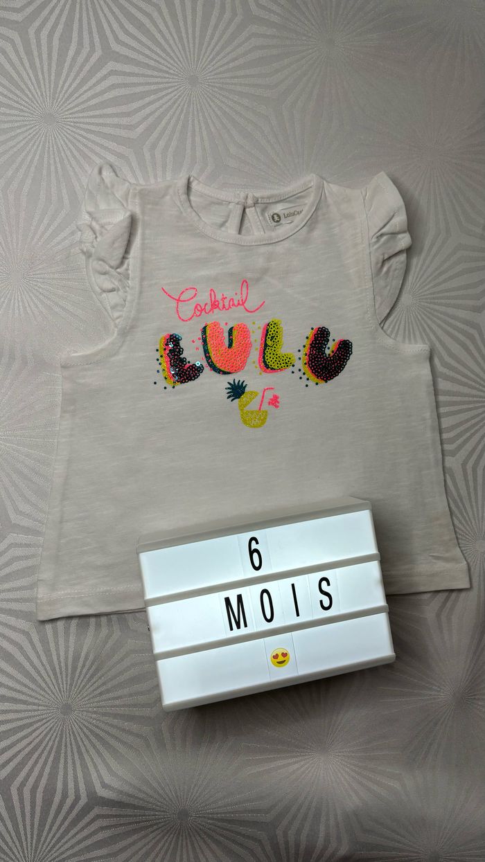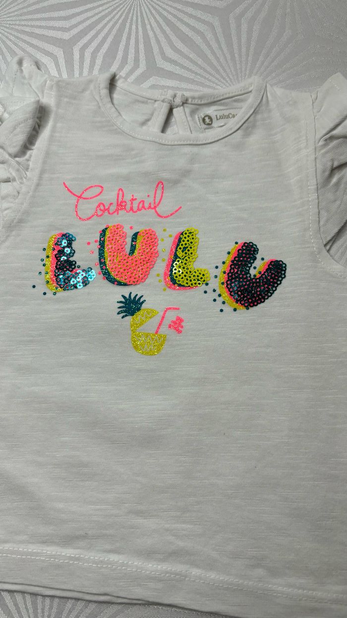 🧸 Débardeur 🧸 🍹 Taille: 6 mois 🍍 Marque: Lulu Castagnette 🍹 Couleurs: Blanc à motifs et écriture en sequins ‼️ Neuf jamais porté, juste lavé