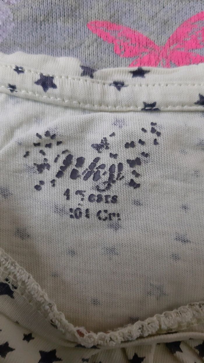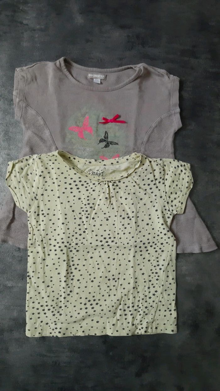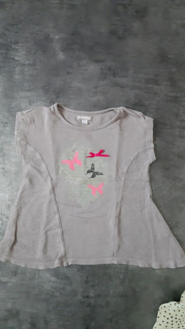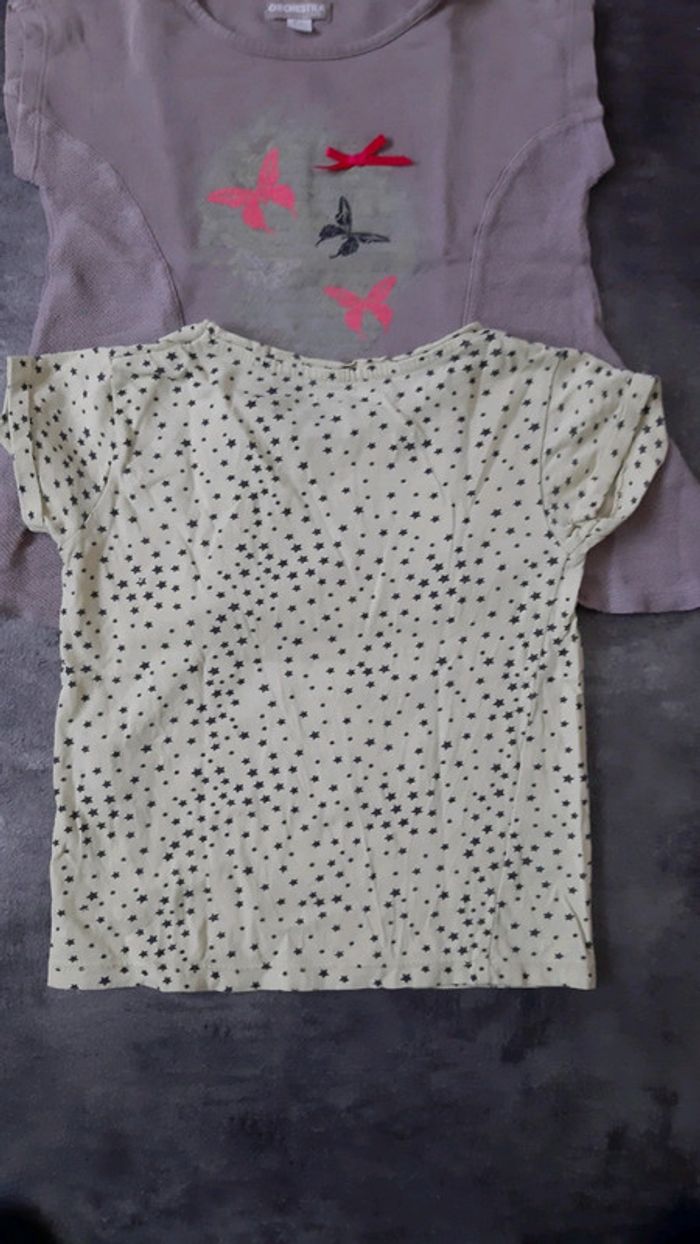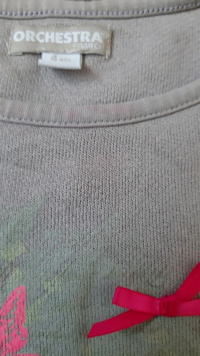 Porté plusieurs fois, état satisfaisant. Une tâche sur le t-shirt Orchestra au niveau du col ( voir avant-dernière photo ). 2 petites taches sur le t-shirt NKY ( voir dernière photo) mais pas de trous. Taille correctement. Âge : 4ans. #sandrinetoulouse31fille4ans