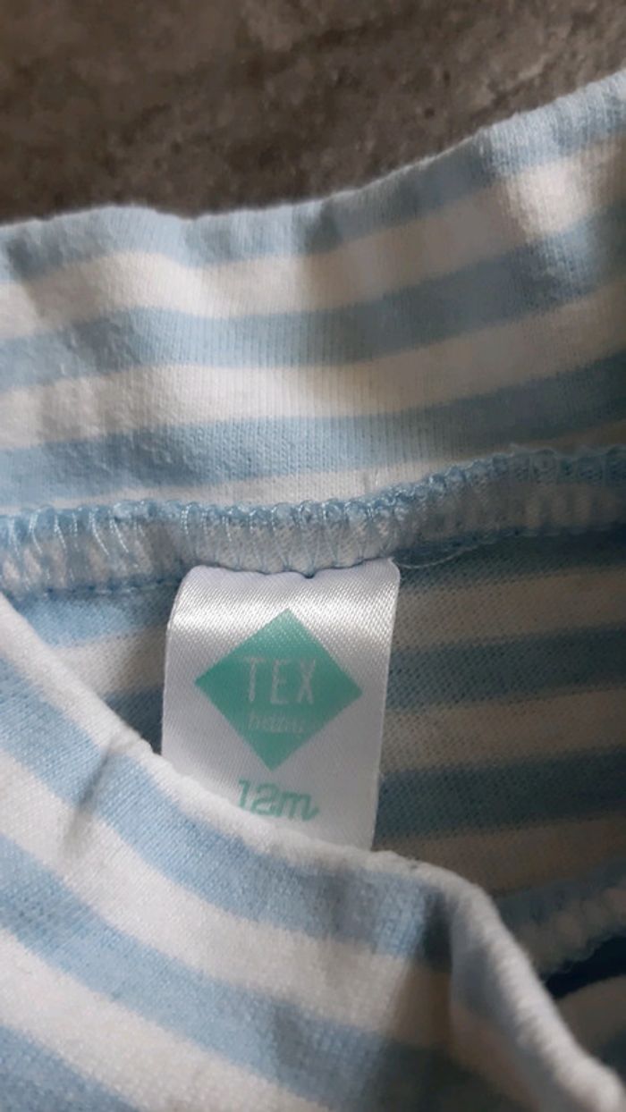 Porté quelques fois, en bon état. Pas de tâches, ni de trous. Taille correctement. 2 t-shirts marque Tex Baby et 1 t-shirt marque Tissaia Âge : 12mois. #sandrinetoulouse31garcon12mois