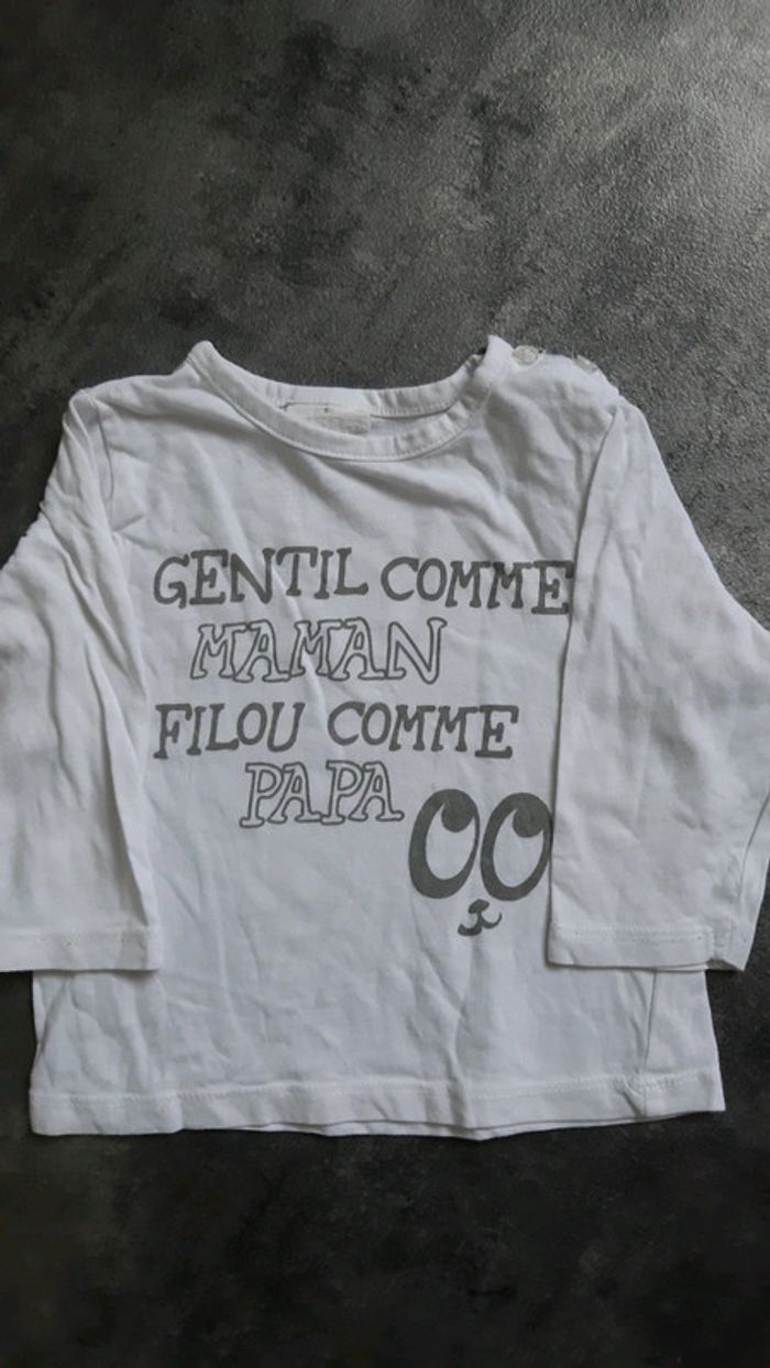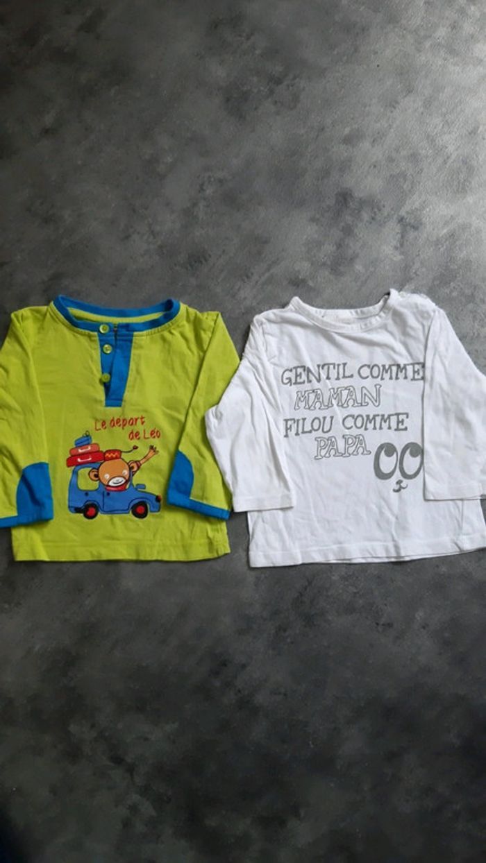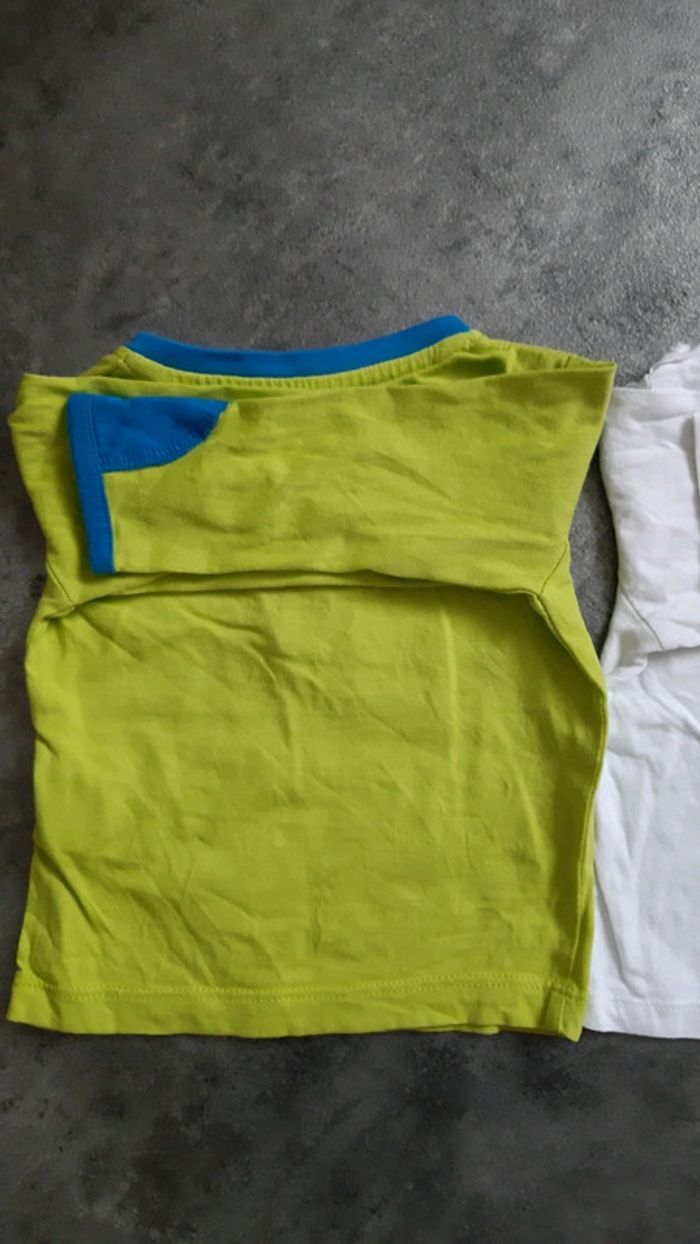Très peu porté, en très bon état. Pas de tâches, ni de trous. Taille correctement. 1 t-shirt marque tissaia et 1 t-shirt sans marque. Âge : 9mois. #sandrinetoulouse31garcon9mois