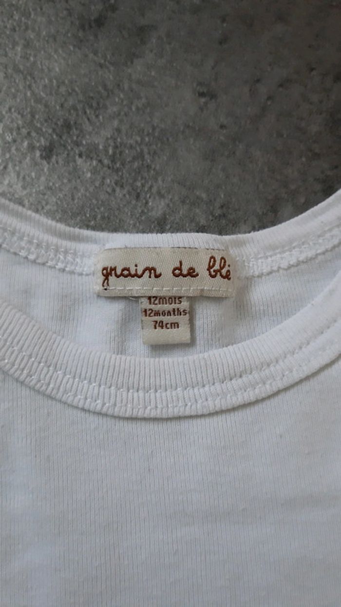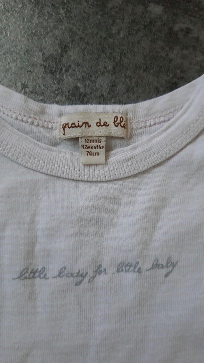 Porté quelques fois, en bon état. Pas de tâches, ni de trous. Taille correctement. Âge : 12mois. 2 bodies marque grain de blé et 1 bodie marque kitchoun. #sandrinetoulouse31fille12mois