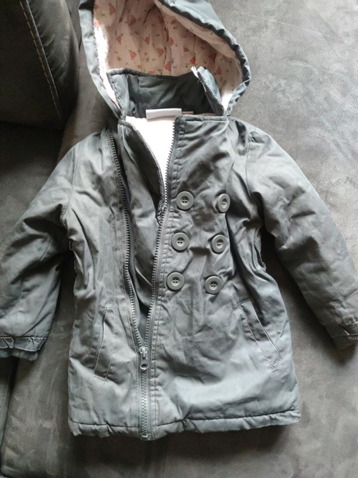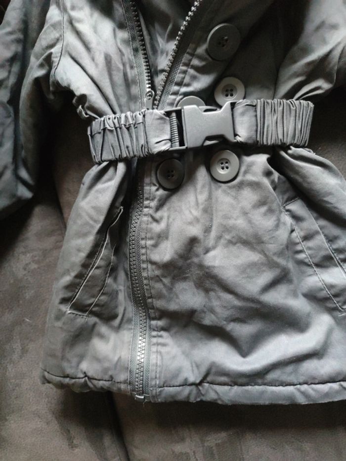 Manteau chaud pour l'hiver avec zip , ceinture et capuche taille fille 96 cm / 3 ans Bon état , propre envoi rapide