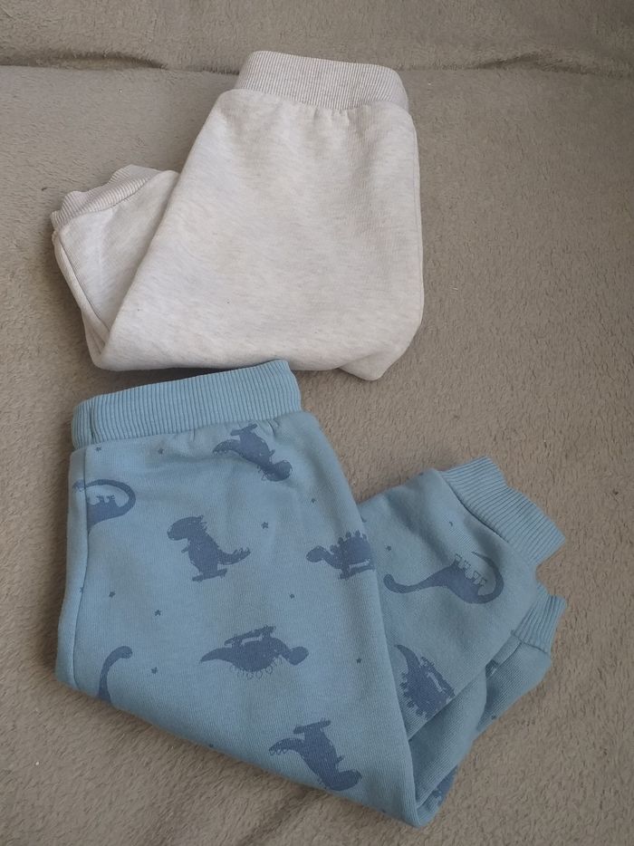 2 bas de jogging pour bébé dont un avec motifs de dinosaures. Très bon état. Taille: 6mois