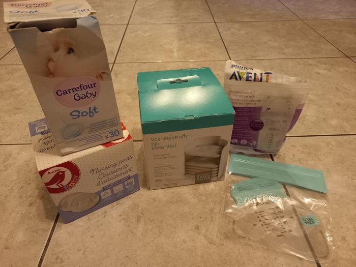 - 1 Boîte pour rangement des sachets de conservation + quelques sachets - 1 Boîte neuve de coussinets d'allaitement + 1 Boîte entamée