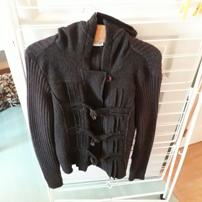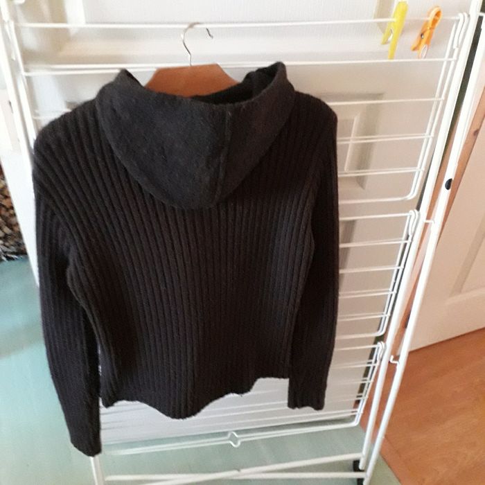 Gilet avec capuche manches et dos en mailles côtelées 25 % laine longueur 58 cm largeur épaule à épaule 40 cm