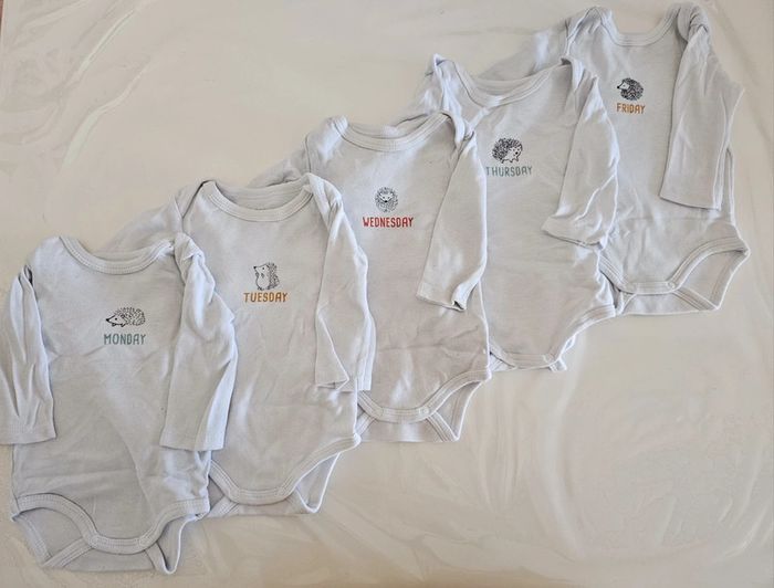 Lot bodies manches longues jour de la semaine 3 mois - 62 cm - Inextenso Très bon état