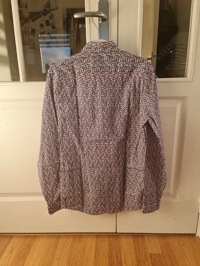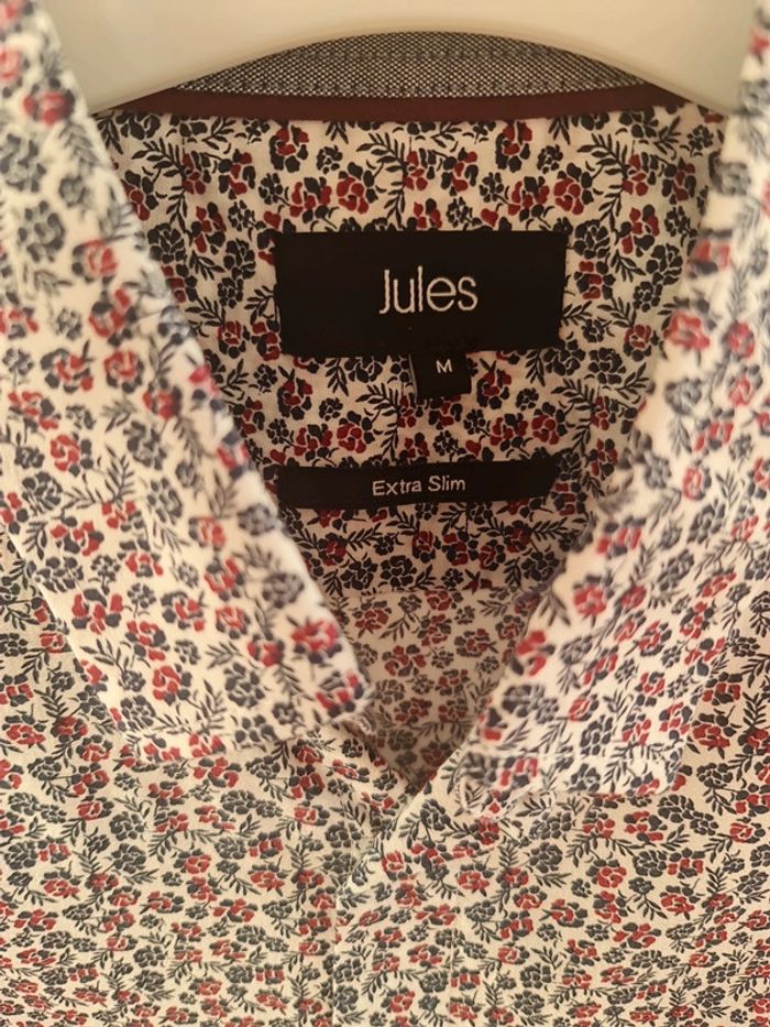 Chemise blanche à motifs fleuri bleu marine et bordeau Jules Coupe ExtraSlim Taille M Très bon état, peu porté