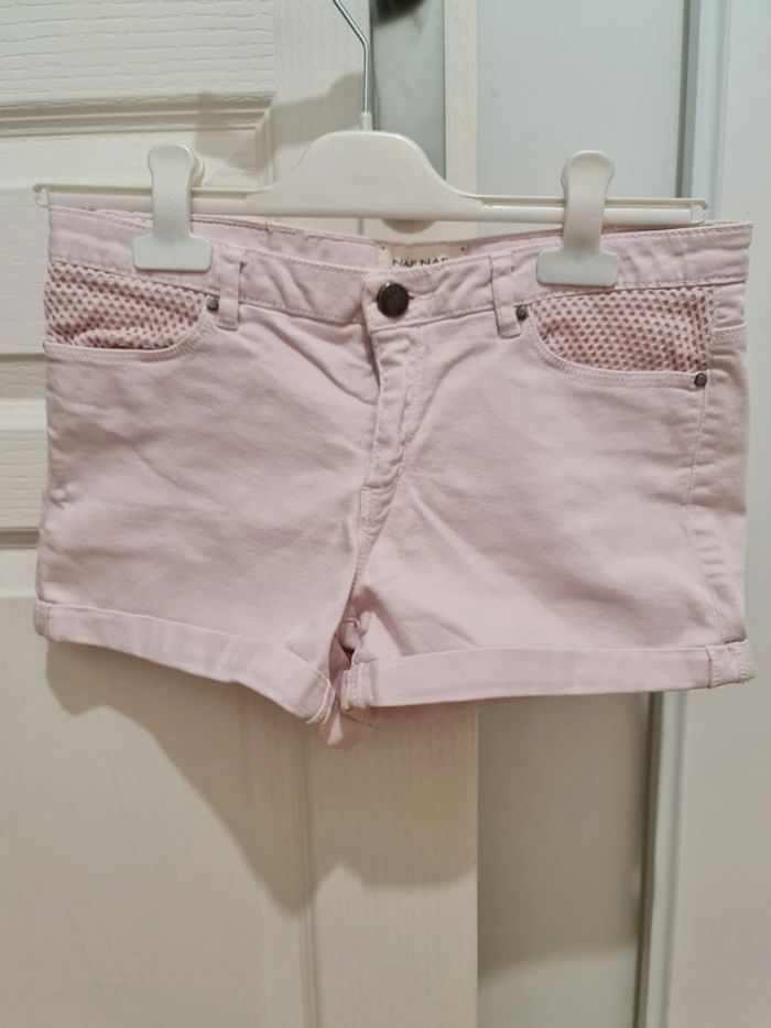 Short en jeans rose pâle avec 4 poches et poches de devant fantaisies