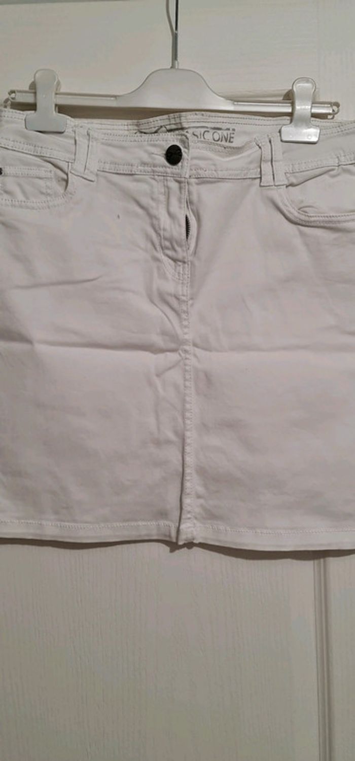 Jupe droite en jeans blanche Légère tâche du côté droit