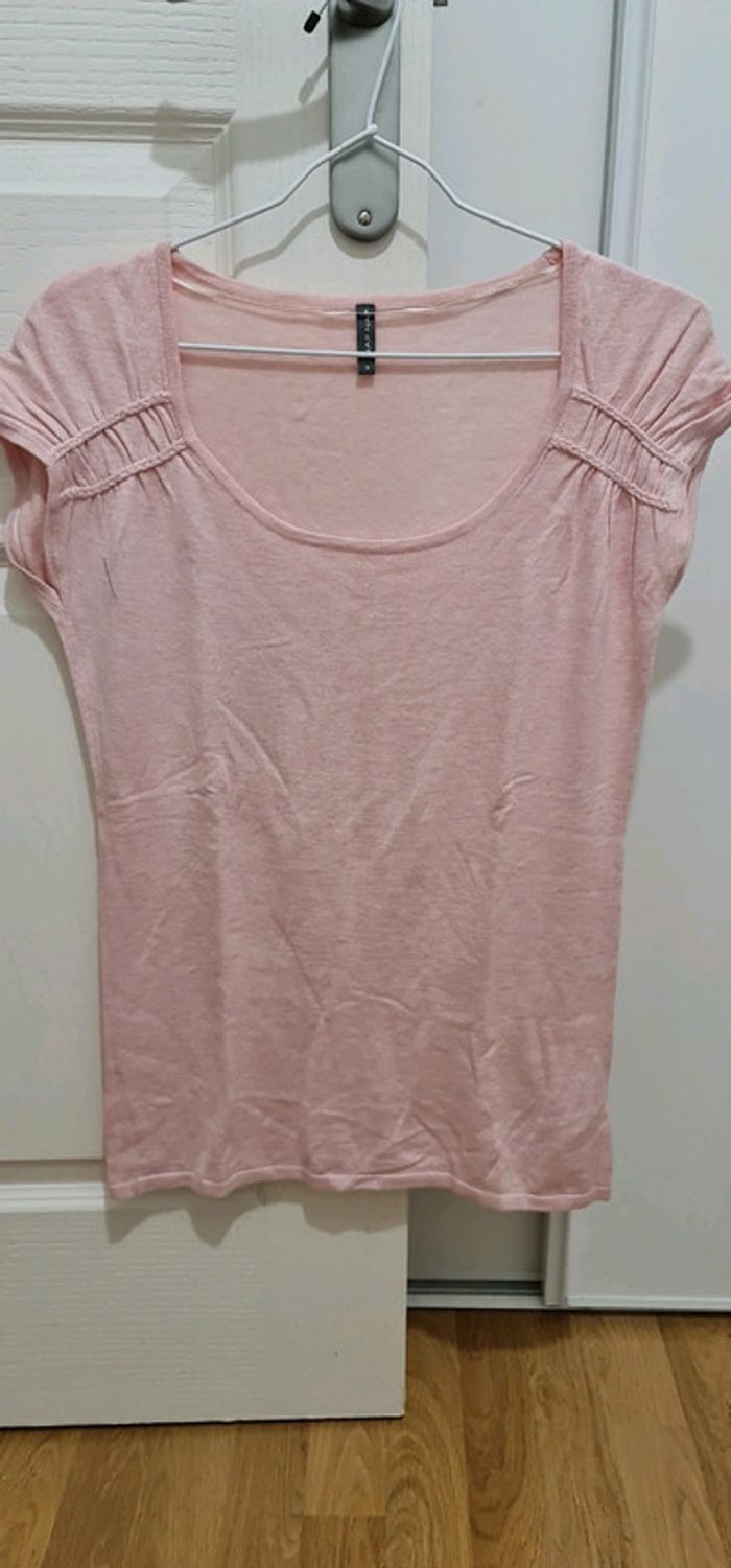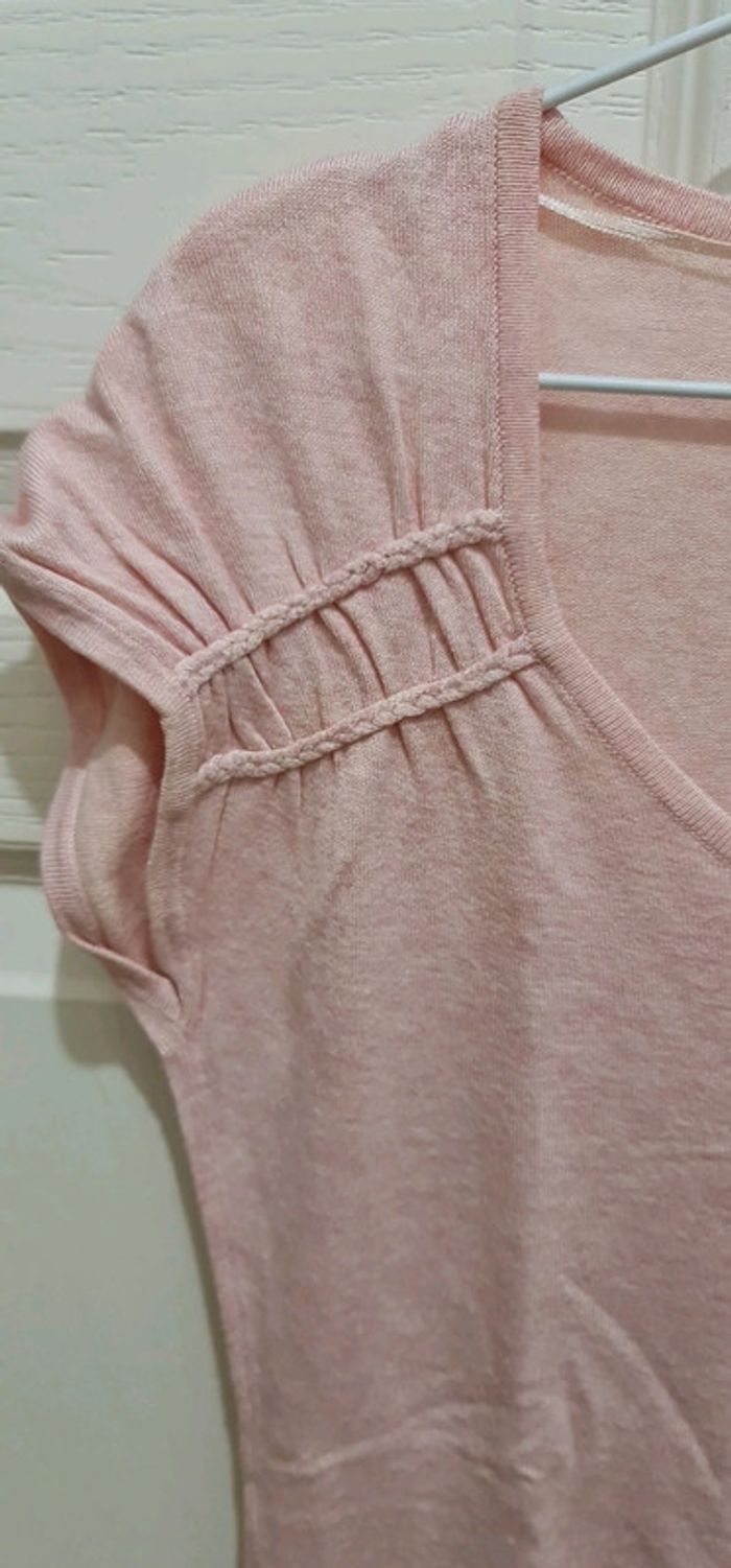 Pull sans manche naf naf rose pâle avec motif tresse au niveau des épaules