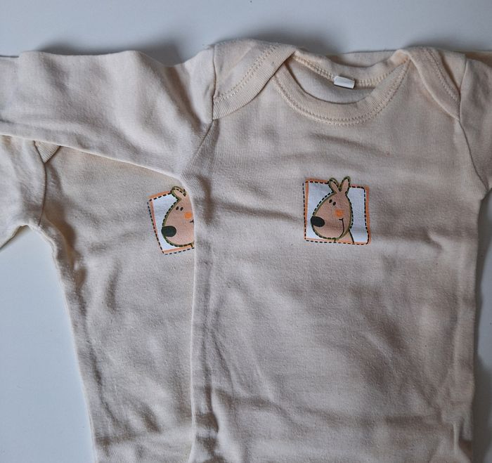 GARÇON 3 MOIS JUMEAUX N°59 2 bodies Longues manches Saumon , imprimé 100% coton Taille 3 mois 1,50€ #kelly_garçon3moisjumeaux