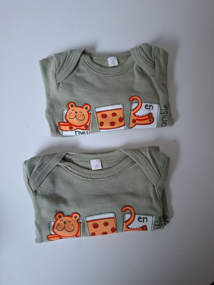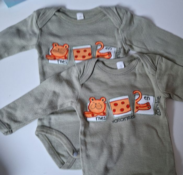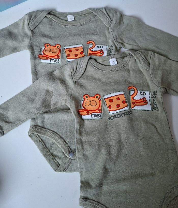 GARÇON 3 MOIS JUMEAUX N°62 2 bodies Longues manches Vert , imprimé Taille 3 mous 100% coton 1,50€ #kelly_garçon3moisjumeaux