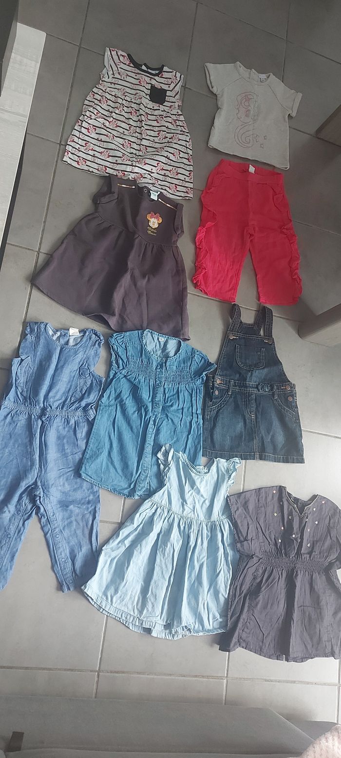 Lot de vêtements printemps/été fille taille 18 mois 6 robes 1 T-shirt 1 pantalon 1 combinaison Marques kiabi, Zeeman, H&M, Disney