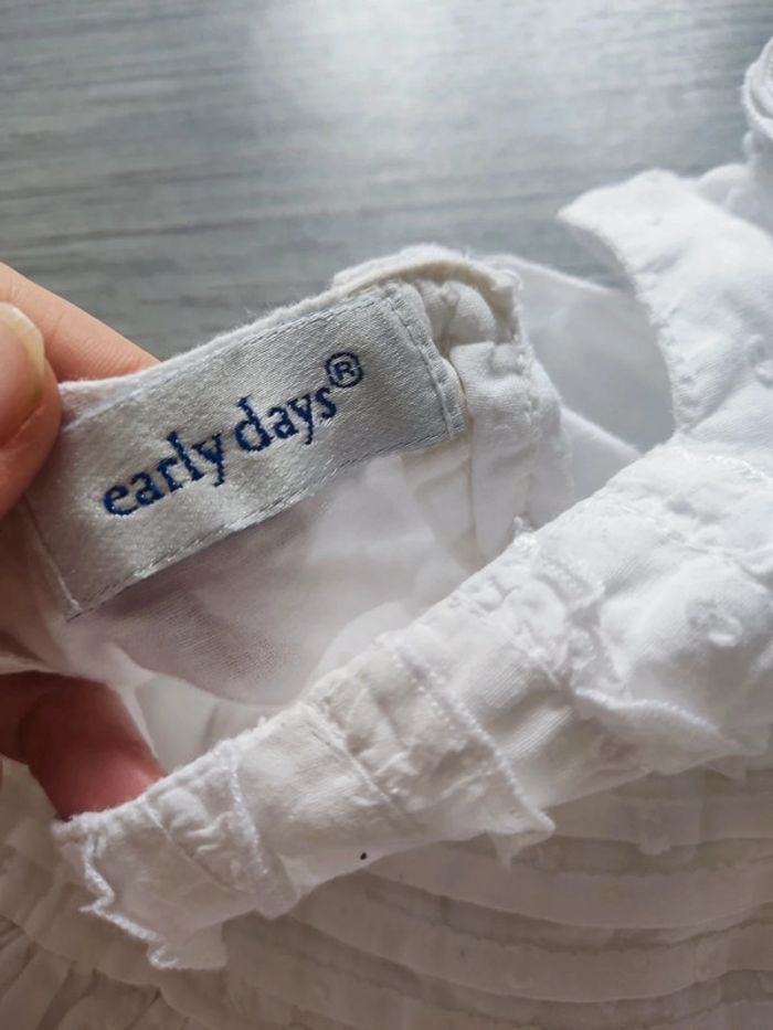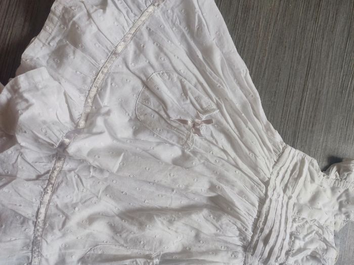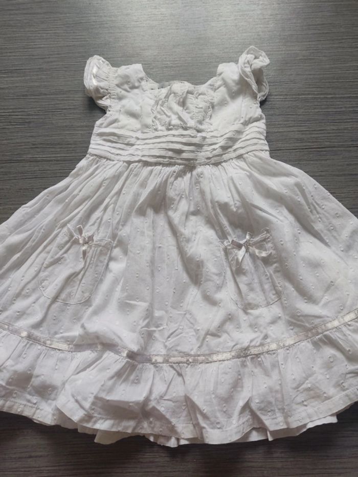 #chapiti9a18moisfille Robe blanche parfait état 9 mois Earlydays jamais portée mais mini tâches cf photos sûrement du aux braderies donc doit partir peut servir de robe pour une cérémonie Baptême ..