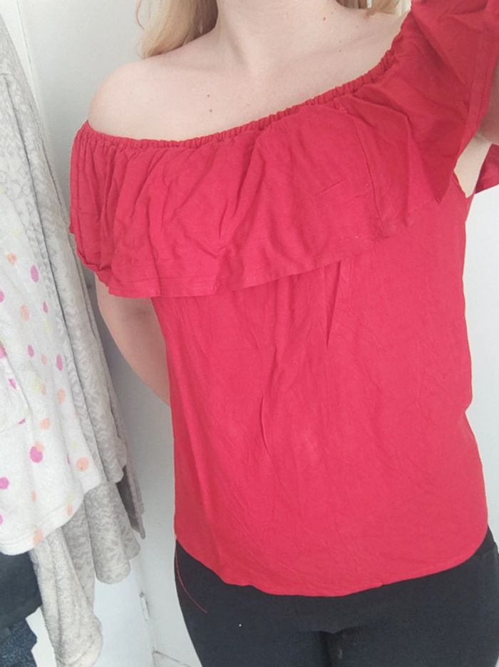 Haut rouge épaules dénudées - photo numéro 1