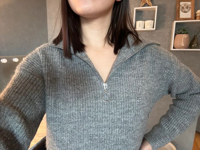 2 robes pulls, Pimkie, coupe droite, col camionneur, tirette, en très bon état, les 2 tailles XS, mini défaut en bas de la grise, ça ne se voit pas porté (mon chat a voulu goûter.. j’ai refais à la va vite😅). Voir photo numéro 6.