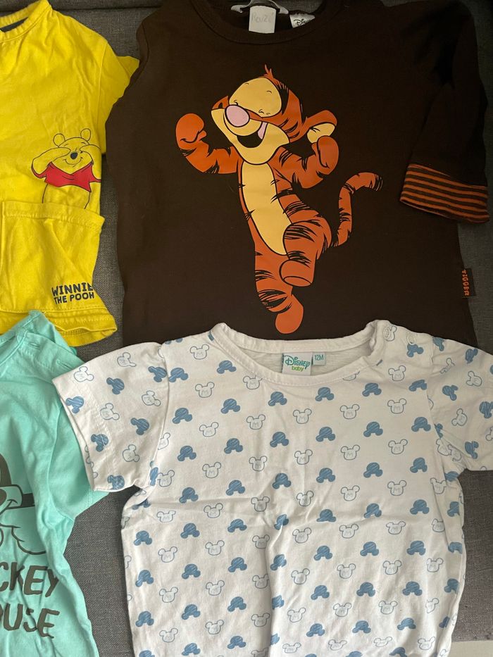 bonjour, je vends un lot composé d’un petit ensemble été, 2 débardeurs, 5 tshirts et un sweat léger en très très bon état de la taille 12mois Disney