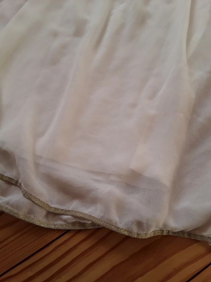 Magnifique robe blanche doublée, finition avec un liseret doré Idéale pour un mariage Peu portée, en très bon état #VintedGift